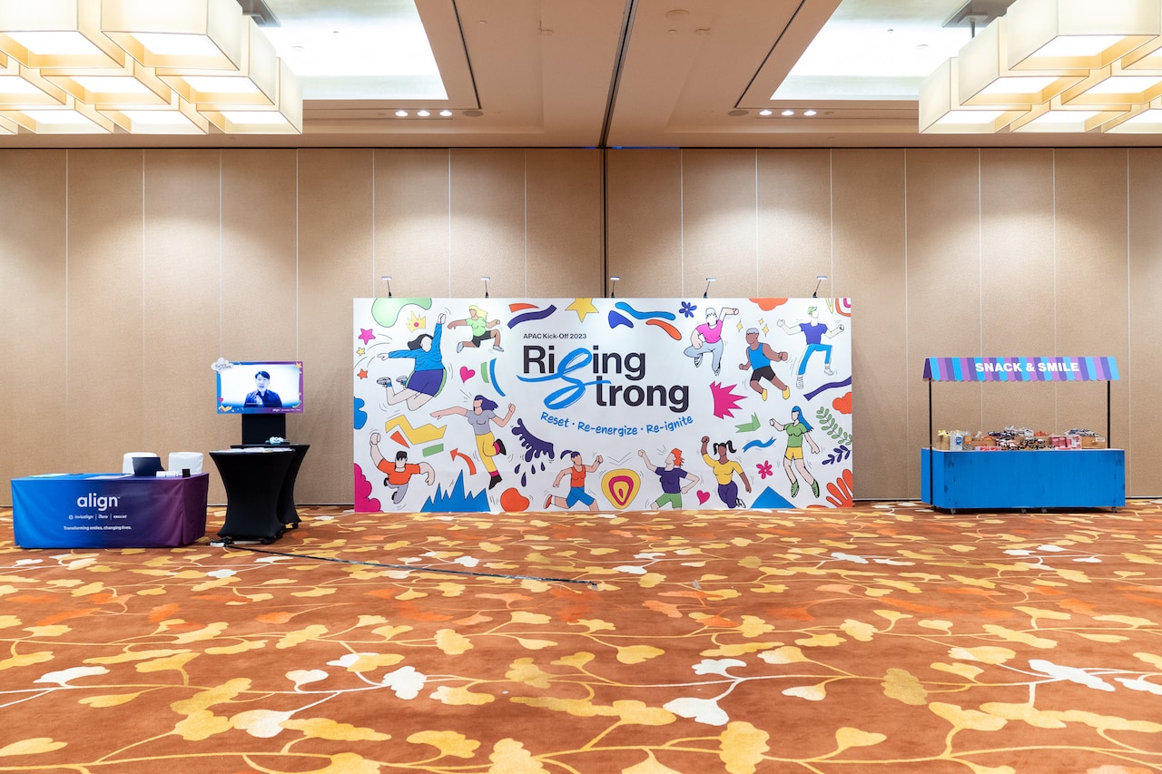 The Align APAC Sales Kick-Off 2023 was a hybrid event where company leaders shared the vision, goals, plans, and expectations for the year ahead with the aim to inspire, excite and unite teams across markets in APAC. We worked with Align to commission an artist with autism to design the impactful and meaningful event key visual which was eventually translated to all event collaterals and delegates’ gifts.