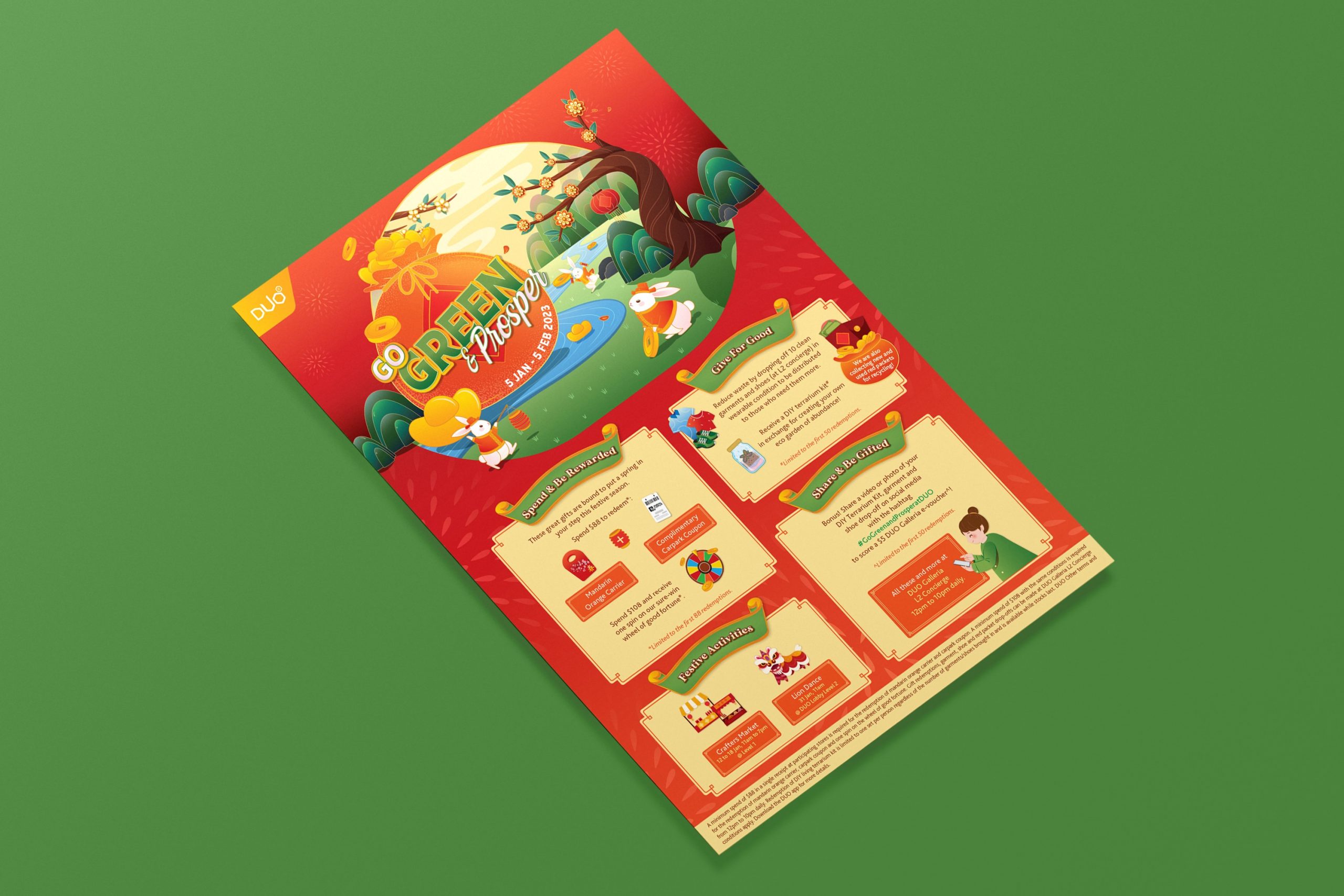 To promote community efforts in sustainability through giving more and wasting less, this CNY campaign conceptualised for DUO Galleria featured garment and red packet collection drives. Shoppers were encouraged to drop off clean garments, shoes and red packets in exchange for a DIY living terrarium kit.